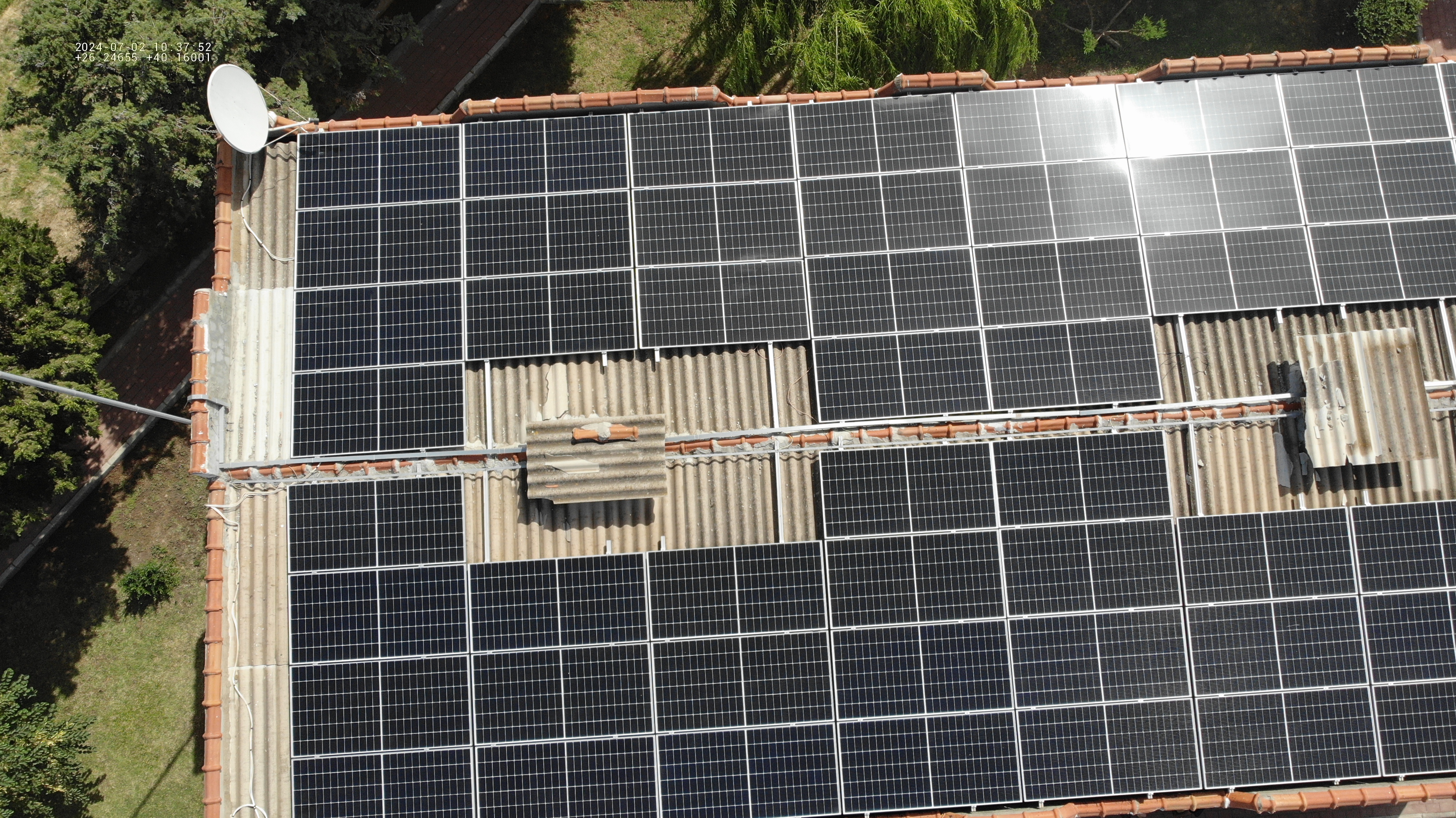 Konut çatısına kurulan 24 kW güneş enerjisi sistemi. 44 panel ile yıllık yaklaşık 36.000 kWh enerji üretimi sağlanmaktadır. Sistem yüksek verimli panel yerleşimi ile optimize edilmiştir.